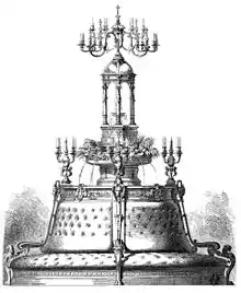 - Grand pouf-fontaine-jardinière, exécuté par la maison Marchand et présenté à l’Exposition universelle de 1873, casino d’Aix-les-Bains