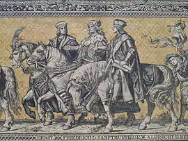 - Ernest de Saxe (1441-1486), en 1460 il épousa Élisabezh, fille du duc Albert III de Bavière ;