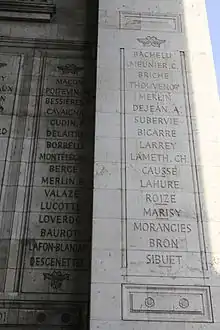 | Hommages | Nom gravé sous l'arc de triomphe de l'Étoile, 30e colonne | |