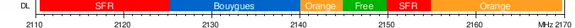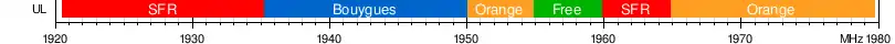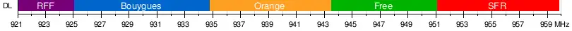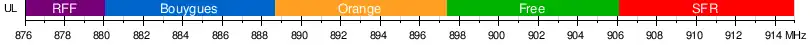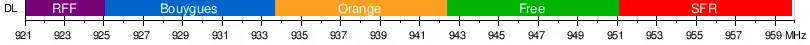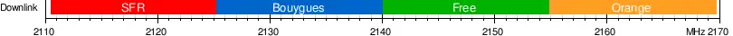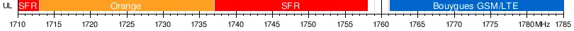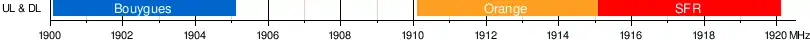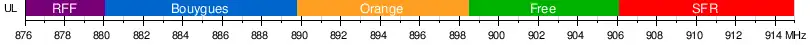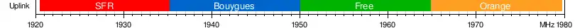 Avec quelques exceptions locales jusqu'au 1er juillet 2015[10] où Bouygues a temporairement conservé 23,8 MHz duplex :