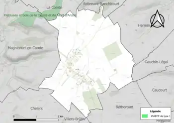 Le territoire communal comprend une ZNIEFF de type 1[Note 1] : les pelouses et bois de la Comté et du mont d'Anzin. Cette ZNIEFF fait partie d’un ensemble de coteaux crayeux en grande partie boisés[9].