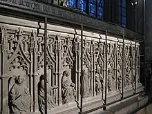 - l'organisation du clergé était pratiquement achevée depuis 1320. Après la nomination d'un official (responsable des affaires religieuses) au XIIIe siècle, l'archevêché s'était doté d'un personnel de 40 employés, dont plus de 20 secrétaires, possédant leurs propres statuts et missions pour la gestion des affaires courantes[48]. Cette séparation entre les affaires spirituelles et temporelles de l'archevêché était encore renforcée par la nomination d'un vicaire général ;
