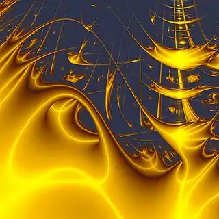 En assignant une valeur d'intensité lumineuse distincte à chaque exposant de Liapounov négatif, claire pour l'exposant nul à la limite de la stabilité et noire pour l'exposant infini dans le cas superstable, on fait apparaître des formes donnant l'impression de relief sur un fond dans lequel les exposants positifs liés au chaos peuvent être représentés par une couleur sombre. Des agrandissements successifs font apparaître le caractère fractal d'autosimilitude[1].