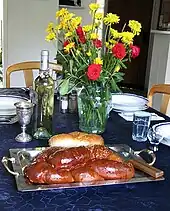 C'est un cérémonial typique associé à la célébration du Kiddouch qui est la prière de sanctification sur le vin prononcée tous les Shabaths et jours de fêtes juives dont le Seder de Pessah (Pâque) où du pain azyme (matza) est rompu, salé et consommé en lieu du pain levé habituel[14].