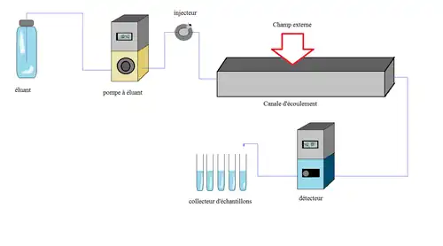 Le fractionnement d’écoulement de champ comprend plusieurs sous-techniques différentes. Le principe de base est le même pour chaque technique, mais diffère par le champ de force appliqué.