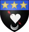 De sable, au cœur d'argent traversé d'une flèche de gueules, posée en bande et accompagné en pointe d'un croissant d'argent ; au chef cousu d'azur chargé de trois étoiles d'argent.[4],[6] |