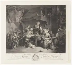 - Gravures pour le Monument du costume physique et moral de la fin du XVIIIe siècle de Sigmund Freudenberger, 1789 : La Soirée d'hiver[8], La Promenade du soir[9], L'événement au bal[10].