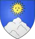 D'azur au rocher d’argent mouvant de la pointe surmonté d’un soleil d’or.[2] |