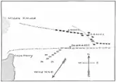 Le plan d'engagement des deux flottes lors de la bataille de la Chesapeake. Carte anglaise (vers 1920).