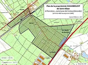 Propriété où Chambrelent expérimenta un réseau d'assainissement dense (noter le quadrillage de fossés espacés de 100 m de côté)[2]