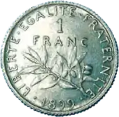 Pièce de 1 franc en argent ; la dernière sera émise en 1920 et marque la fin « symbolique » du franc germinal.