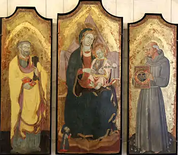- La Vierge et l'Enfant, saint Pierre et saint Bernardin de Sienne, triptyque, musée du Petit Palais (Avignon)[2].