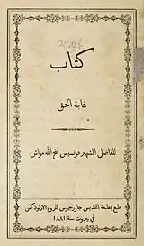 | Riḥlaẗ Bārīs | Al-Maṭba‘aẗ al-šarafiyyaẗ | Beyrouth | 1867[21] | Voyage de Paris |