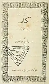 | Mir’āẗ al-ḥasnā’ | Maṭba’aẗ al-ma’ārif | Beyrouth | 1872[21] | Le Miroir de la belle |