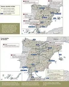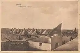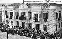 En 1909, les Rifains attaquèrent les ouvriers qui construisaient la voie ferrée unissant Melilla aux mines de fer dont l’exploitation était imminente. L’Espagne envoya des renforts, mais elle contrôlait mal le terrain et manquait d’une base logistique, ce qui entraîna le désastre de Barranco del Lobo de . La réaction espagnole qui s’ensuivit permit d’étendre l’occupation de la zone côtière du cap de l’Eau à la pointe Negri. Mais à partir de , le chef de la résistance rifaine El Mizzian reprit ses opérations de guérilla, causant de lourdes pertes à l’armée espagnole[111] En , le président du Conseil José Canalejas prit prétexte d’une agression kabyle sur les bords du fleuve Kert pour donner mission à un corps de troupes d’élargir les frontières de la zone espagnole, nouvelle campagne contre laquelle la population espagnole protesta par l’insurrection de l’[112].