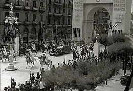 Le 17 juillet 1936, Franco, relégué aux îles Canaries par le gouvernement du Front populaire, se rallia à la dernière minute, à la suite du meurtre de José Calvo Sotelo, à la conspiration militaire en vue de réaliser un coup d’État. Celui-ci, qui eut lieu le , échoua mais marqua le début de la guerre civile espagnole. À la tête des troupes d’élite marocaines, le général Franco réussit à briser le blocus républicain du détroit de Gibraltar et avec l’aide allemande et italienne, débarqua en Andalousie, d’où allait débuter sa conquête de l’Espagne. La Junte de défense nationale, comité collégial hétéroclite des différents chefs militaires de la zone nationaliste, le nomma au poste de généralissime des armées, c’est-à-dire de commandant suprême militaire et politique, en principe pour la seule durée de la guerre civile. Bénéficiant de l’appui des dictatures fascistes et de la passivité des démocraties, l'armée nationaliste remporta la victoire, proclamée fin après la chute de Barcelone et celle de Madrid. Le bilan est lourd (entre 100 000 et 200 000 morts) et la répression s'abattit sur les vaincus (270 000 prisonniers, 400 000 à 500 000 exilés).
