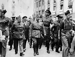 - Camilo Alonso Vega, qui, entré à l’académie de Tolède en même temps que Franco, retrouva celui-ci au Maroc, puis rejoignit en 1917 Franco et Pacón à Oviedo. Pendant la guerre civile, il commanda l’une des unités de choc de l’armée nationaliste, et devint par la suite directeur de la Garde civile, ministre de l’Intérieur de 1947 à 1959, et capitaine général[51].