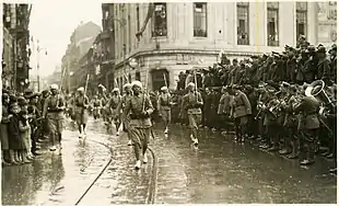 Le , Franco faisait partie de la force de soutien commandée par Riquelme qui devait empêcher les rebelles de prêter main-forte aux hommes d’El Mizzian retranchés dans le village d’Al-Lal-Kaddour. Les Espagnols parvinrent à cerner les rebelles, et El Mizzian, pourtant réputé invulnérable, fut tué sur son cheval et sa troupe détruite. Les Réguliers indigènes, qui constituaient l’avant-garde, avaient tenu le rôle principal ; impressionné par la promotion au grade de capitaine de deux lieutenants de cette unité, tous deux blessés, Franco prit la résolution de solliciter en une place de lieutenant dans les forces régulières indigènes[122]. Le de cette même année, Franco fut promu lieutenant en premier, alors qu’il n’avait que 19 ans, unique fois du reste où il monta en grade par le seul effet de l’ancienneté[123], et reçut le sa première décoration militaire[124].