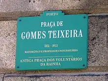 - Une place de Porto a été nommée place Gomes Teixeira.