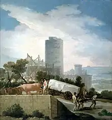 En juillet 1774, Raphaël Mengs revint à Madrid où il dirigeait la Fabrique royale de tapisserie. Sous son impulsion, la production augmenta considérablement. Il réclama la collaboration de Goya qui s'y établit l'année suivante[21]. Goya partit plein d'ambition s'installer à la capitale, profitant de son appartenance à la famille Bayeu[22].