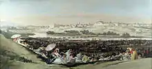 Saint Bernardin de Sienne prêchant devant Alphonse V d'Aragon (1783). Fait partie de la décoration de la basilique de Saint-François-le-Grand de Madrid. Le jeune homme à droite, en second plan qui regarde vers les spectateurs est probablement un autoportrait de Goya.