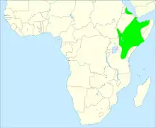 Est de l’Afrique : Érythrée, sud de l’Éthiopie (sauf les Hauts Plateaux), nord et sud de la Somalie, Kenya, nord-est de l’Ouganda, extrême sud-est du Soudan, centre-nord de la Tanzanie.