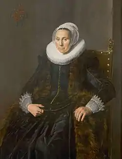 ![]() Portrait de Maritge Voogt Claesdr., épouse de Pieter Jacobsz. Olycan, 1639, huile sur toile, 128 × 94,5 cm (Rijksmuseum, Amsterdam). |