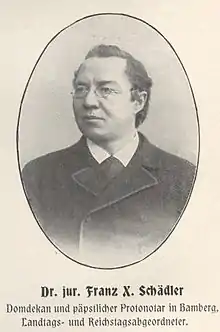 Franz Xaver Schädler (né le à Oggersheim et mort le à Bamberg) est un prêtre du diocèse de Spire, plus tard capitulaire de cathédrale de l'archidiocèse de Bamberg, membre de la Chambre des députés bavaroise à Munich et du député Reichstag à Berlin.