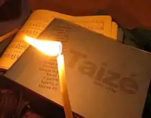- En 1944, Roger Schutz, plus tard fondateur de la communauté de Taizé, rédige une Introduction à la vie communautaire pour la communauté réformée évangélique de Cluny. L'ouvrage est imprégné de la méditation des Béatitudes, et cite plusieurs fois Wilfred Monod[33]. Ailleurs, Schutz écrit : « Pour nous solidariser avec les Veilleurs, nous avons remanié notre dernière Règle dont l'importance était toute franciscaine et nous sommes allés jusqu'à employer leurs expressions avec l'espoir de nous rattacher sur un point à une tradition très neuve certes, mais qui est une réponse à un des besoins présents de l'Église »[32],[34]. Il rédige le petit texte qui deviendra pour Taizé, Pomeyrol et Grandchamp un condensé de la règle communautaire : « Prie et travaille pour qu'Il règne / Que dans ta journée labeur et repos soient vivifiés par la Parole de Dieu / Maintiens en tout le silence intérieur pour demeurer en Christ / Pénètre-toi de l'Esprit des Béatitudes : Joie, Simplicité, Miséricorde. »