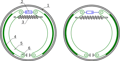 - des actionneurs : une ou deux cames pour pousser les mâchoires sur le tambour[N 1] ou des pistons pour les freins à commande hydraulique ;