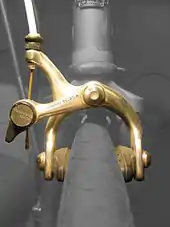 Ils consistent en deux bras courbés qui se croisent et pivotent au-dessus de la roue. Ils tiennent les patins de chaque côté de la jante. Ses bras s'étendent tous les deux du même côté ; l'une de ces extensions est fixée au câble, l'autre à sa gaine. Lorsque le cycliste appuie sur le levier, les bras sont actionnés et les patins vont appuyer sur la jante. Ces freins sont simples et efficaces pour des pneus relativement fins, mais sont assez flexibles, ce qui rend les performances assez mauvaises avec des pneus larges. S'ils sont de mauvaise qualité, ils ont également tendance à pivoter lors du freinage sans retrouver leur position initiale ; on se retrouve alors avec un patin qui frotte continuellement contre la jante. Ces freins étaient utilisés sur tous les types de vélos de route avant l'apparition des freins à étrier double pivot, mais actuellement ils ne sont plus utilisés que sur les vélos bon marché.
