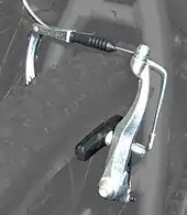La force de freinage des freins à mâchoire provient de l'application d'un patin (habituellement en cuir ou en caoutchouc) sur la jante.