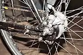 - les systèmes à dérailleurs utilisent des dérailleurs extrêmement courts qui, d'une part, supportent d'être tordus fréquemment et, d'autre part, ne nécessitent pas un rétropédalage excessif pour enclencher le frein. Bien que ce type soit devenu moins courant, SRAM en fabrique encore ;