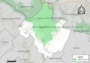 Le territoire communal comprend une ZNIEFF de type 1[Note 1] : le coteau et la forêt domaniale d'Olhain. Cette ZNIEFF est située au niveau de la première ligne de crête de la partie nord des collines de l'Artois[11].
