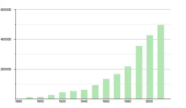 | 1950 | 91 669 | ▲ +51,06 % | |