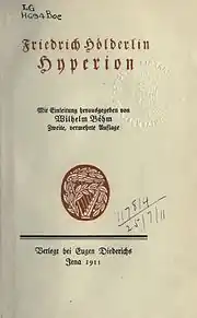 - Roman : Hypérion ou l'Ermite de Grèce : roman épistolaire, première partie publiée en 1797, deuxième partie publiée en 1799.