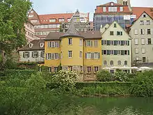 Johann Christian Friedrich Hölderlin est né le en Souabe à Lauffen am Neckar, aujourd'hui ville du Bade-Wurtemberg. Son père, Heinrich Friedrich Hölderlin, administrateur de biens conventuels, meurt à 36 ans, alors qu'il n'a que deux ans. En 1774, sa mère, Johanna Christiana Hölderlin, se remarie à 26 ans avec le conseiller Gock, bourgmestre de Nürtingen, qui décédera en 1779. Cette situation de l'enfant Hölderlin exposé à la mort accidentelle de son « second père » répétant celle de son « vrai père » a suscité après coup au XXe siècle l'intérêt de la psychanalyse[4]. Comme le constate Rudolf Leonhard, Hölderlin est « issu d'une famille où l'on meurt beaucoup »[5] : à la suite des veuvages de sa mère, Hölderlin baignera dans un milieu familial essentiellement maternel et féminin, peuplé d'une succession de vies et de morts : la plupart de ses petites sœurs, ainsi qu'un anonymus, meurent en bas âge. Seuls restent en vie sa deuxième sœur et chère « Rike », Heinrike Hölderlin, née en 1772, et un demi-frère, Karl Gock, né en 1776.