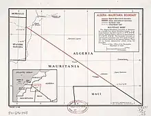 La frontière algéro-mauritanienne est matérialisée par 3 bornes le long de ses 463 km[1], suivant une ligne droite, entre les points géographiques 25° 00′ 00″ N, 4° 50′ 00″ O (tripoint avec le Mali) et 27° 17′ 40″ N, 8° 40′ 00″ O (tripoint avec le Sahara occidental). Entre les deux, elle traverse le puits Hassi 75 qui constitue le second point de bornage.