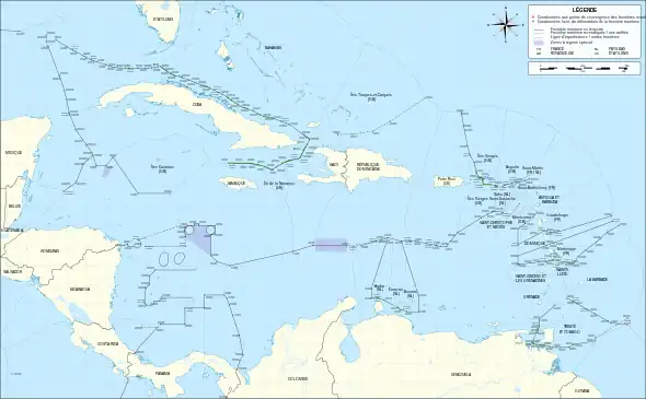 Carte des frontières maritimes dans les Caraïbes