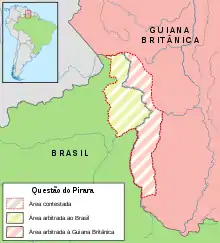 La région resta isolée longtemps après que les Européens eurent entrepris la colonisation de l'Amérique du Sud. Tandis que les Portugais colonisaient peu à peu les confins amazoniens, les Hollandais puis leurs successeurs, les Britanniques, remontaient les grands fleuves de Guyane. Le savant prussien Robert Hermann Schomburgk explora au profit des Britanniques l'actuelle zone de la frontière à partir de 1835 et descendit en 1842 la rivière Takutu jusqu'à sa confluence avec l'Ireng, proclamant que toute la zone attenante revenait aux Britanniques. Ceci provoqua une contestation des Brésiliens qui demandèrent un arbitrage. En 1901, le litige connu sous le nom de question du Pirara fut soumis à l'arbitrage du souverain Victor-Emmanuel III d'Italie : il se conclut en faveur du Royaume-Uni, ce pays obtenant 19 630 km2 alors que seulement 13 570 km2 revenaient au Brésil. La fixation de la délimitation sur les rivières Takutu et Ireng donna aux Anglais une entrée sur le bassin amazonien. Une légère modification en 1926 donna au tracé la forme qu'il a de nos jours et qui fut matérialisée sur le terrain par des bornes à partir de 1932 et ce jusqu'en 1939.