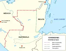 La frontière entre le Guatemala et le Mexique est bordée par les états mexicains du Chiapas, du Tabasco et du Campeche et les départements guatémaltèques entre autres de Petén, San Marcos et Huehuetenango. Cette frontière a été l'objet de nombreux contentieux et a été définitivement établie à la fin du XIXe siècle sans pour autant être contrôlée à cette époque. Son contrôle a commencé avec l'arrivée des réfugiés guatémaltèques en 1981 à la suite de la guerre civile dans ce pays et les incursions de l'armée du Guatemala en territoire mexicain. Dans des politiques de protection des ressources naturelles, de lutte contre le narcotrafic et contre l'immigration cette frontière n'a cessé depuis de se militariser de façon croissante.