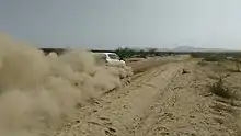 Route poussiéreuse au Kenya à l'approche de la frontière.
