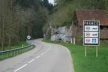 - La route qui joint le hameau de Lucelle, dans la commune de Pleigne (canton du Jura, 47° 25′ 17″ N, 7° 14′ 43″ E) et le lieu-dit Klösterli, dans la commune de Kleinlützel (canton de Soleure, 47° 25′ 32″ N, 7° 25′ 04″ E), et qui évolue principalement en territoire français — mais avec une courte incursion en Suisse à hauteur du ruisseau de Bavelier — a le statut de « route internationale » (ainsi que la courte déviation dite de Saint-Pierre construite entre 1927 et 1929). En vertu d'un supplément de convention du , la liberté de transit par cette route est accordée à la Suisse. Cette convention a été précisée par un accord franco-suisse du qui accorde aux agents suisses chargés de l'exercice de la police et de la surveillance douanière sur les tronçons suisses de cette route le droit d'emprunter les tronçons français en uniforme et en armes.