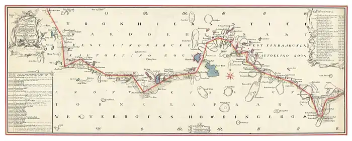Feuillet 21 d'un codicille de la convention de 1751 pour préciser les droits du peuple Samis concernant la frontière entre la Norvège et la Suède dans la région de Kautokeino. Il a été réalisé en 1765, et mesure 130×331 cm.