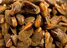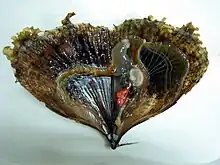 | Piure | Espèce d'ascidie comestible des côtes du Chili et du Pérou[53], le piure possède un goût iodé très fort et une haute teneur en fer. Elle peut être consommée crue, cuisinée ou accompagnée avec de l'oignon émincé, de la coriandre et du citron, ou cuite avec d'autres ingrédients et souvent servie avec du riz nature. | ![]() |