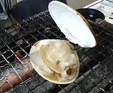 | Palourde Autres noms : clovisse, tape Famille : Veneridae Espèces consommées : Austrovenus stutchburyi, Chamelea gallina, Chione californiensis, C. cancellata, Circe scripta, Cyclina sinensis, Globivenus rigida, G. strigillina, Leukoma staminea, Macrocallista nimbosa, Megapitaria maculata, Paratapes undulatus, Polititapes aureus, P. rhomboides, Ruditapes decussatus, R. largillierti, R. philippinarum, Saxidomus gigantea, S. nuttalli, S. purpurata, Tivela mactroides, T. stultorum, Venerupis corrugata, V. geographica | Les palourdes sont particulièrement appréciées crues, et font l'objet de nombreuses recettes. On peut par exemple les consommer « farcies » (c'est-à-dire complétées avec du beurre à l'ail et cuites au four), en soupe (chaudrée de palourdes) ou avec des spaghettis ou linguines (spaghetti alle vongole). Plat d'origine napolitaine, surtout servi dans les familles lors des fêtes de noël. | |