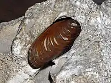 | Brachiopode, moule à queue, Probolinggo | Ce genre à l'origine indo-pacifique est récolté pour la consommation humaine du Japon jusqu'en Australie. Il est cuisiné et consommé en Nouvelle-Calédonie (Lingula anatina Lamarck. 1801 et Lingula adamsi Dall, 1873) où il est dénommé "moule à queue"[57]. | ![]() |