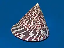 | Arche Autre nom : aile-de-dindon Famille : Arcidae Espèces consommées : Anadara brasiliana[11], A. broughtonii, A. ferruginea[12], A. notabilis, Arca noae, A. zebra, Senilia senilis | Ce sont des comestibles peu estimés. | ![]() Arca zebra |