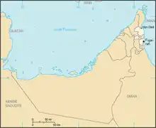 | Coordonnées | 25° 07′ 44″ nord, 56° 20′ 12″ est | |