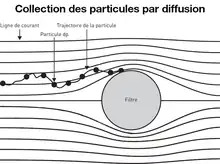 L'erreur la plus répandue consiste à supposer que seul un effet tamis est responsable de la capture des aérosols par un milieu fibreux. En réalité, l'efficacité unitaire de collection d'une fibre est fonction de plusieurs mécanismes physiques[23] :
